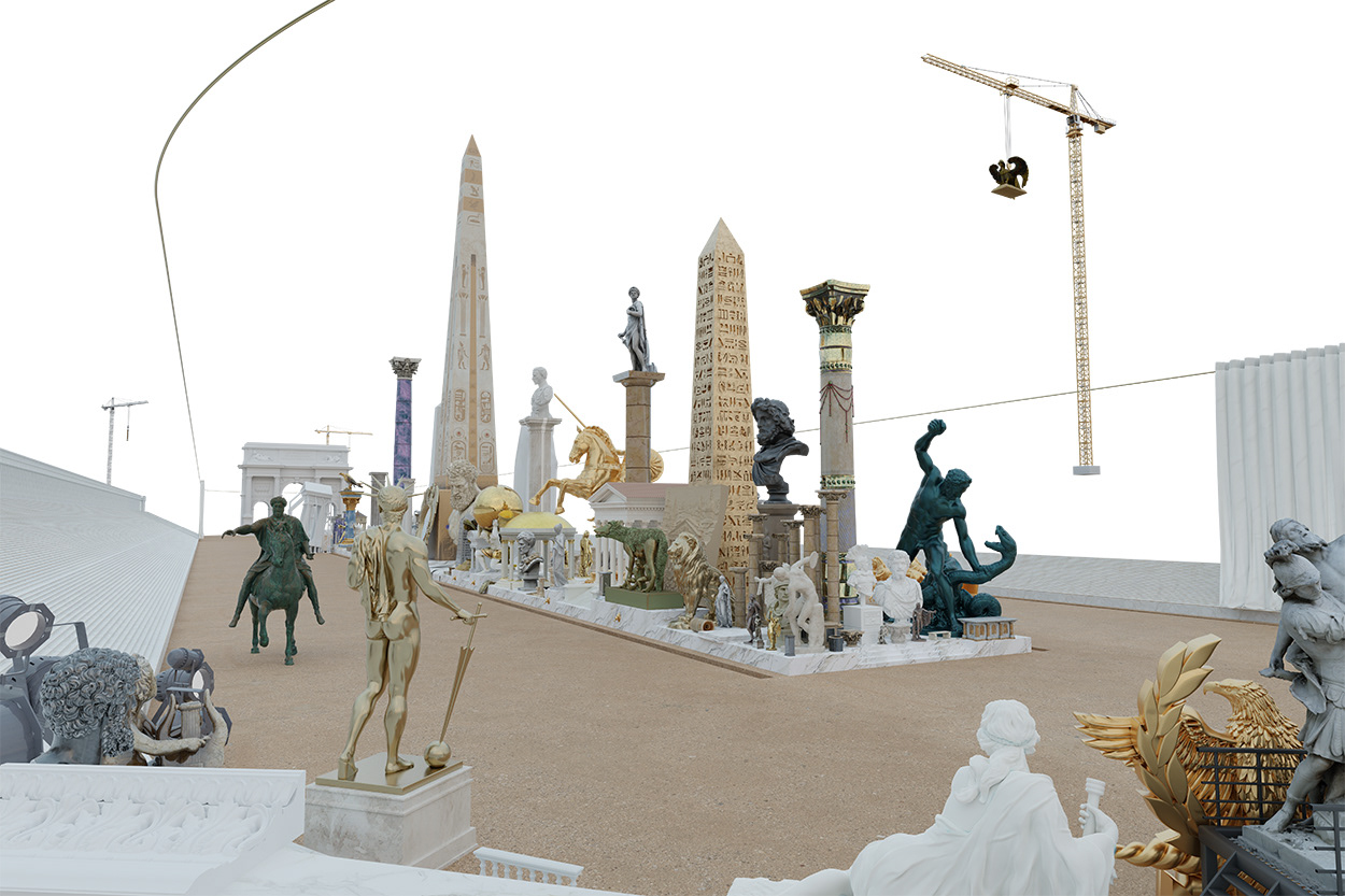 Rome est un rêve. Un chantier permanent, qui ne cesse de s’édifier et de se ruiner sur ses propres vestiges. Son patrimoine n’est pas sacré : il est en cours de fabrication. Dans le prolongement de Piranèse, j’imagine la construction d’une Rome idéale, irréelle — une archive spéculative du Circus Maximus, où des machines de chantier récupèrent les fragments antiques de la ville pour reconstruire un Circus Maximus qui n’a jamais existé, mais dont nous rêvons.